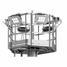 Освещение со стационарной короной обладает рядом существенных преимуществ перед традиционными системами. Главное его достоинство — неизменное положение прожекторов, что гарантирует сохранение светотехнических параметров на протяжении всего срока эксплуатации. Мачты освещения со стационарной короной обеспечивают равномерное распределение светового потока без эффекта ослепления, что особенно важно для транспортных объектов. В отличие от систем с мобильной короной, стационарная корона, вмонтированная в конструкцию, не требует периодического обслуживания механизмов спуска-подъема, что существенно сокращает эксплуатационные расходы. Конструкции со стационарной короной позволяют организовать качественное освещение территории при минимальном количестве опор, что экономически выгодно при проектировании новых объектов. Прожекторные мачты данного типа отличаются высокой устойчивостью к ветровым нагрузкам и долговечностью (срок службы — более 25 лет).